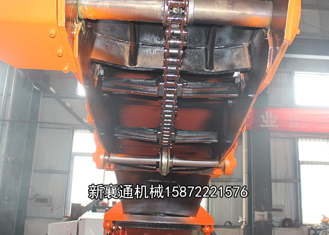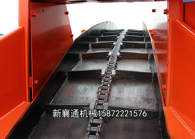 4、刮板鏈的調整; 調整刮板鏈時先松開主動輪支架上的4個固定螺栓,然后擰動調整螺母,注意兩邊的調整量要相等。到運輸槽尾部刮板鏈下垂量為100毫米,將各螺栓和螺母緊固。