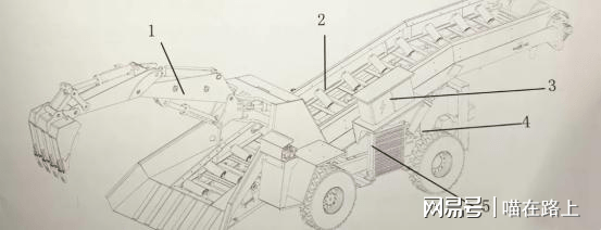 目前扒渣機行業多以ZWY系列挖掘式裝載機為主,ZWY系列挖掘式裝載機由底盤系統、挖掘裝載系統、輸送系統及液壓、電氣系統五大部分組成。采用外接電源或自帶柴油機為動力;采用全液壓驅動,將電力、液壓、機械傳動完美結合,通過電氣和液壓控制系統,操控和協調底盤、挖掘、輸送系統動作,完成車輛行走、轉向、制動、挖掘、輸送、回轉、卸料等功能。下面是ZWY系列非煤礦輪胎式礦用挖掘式裝載機大體結構圖: